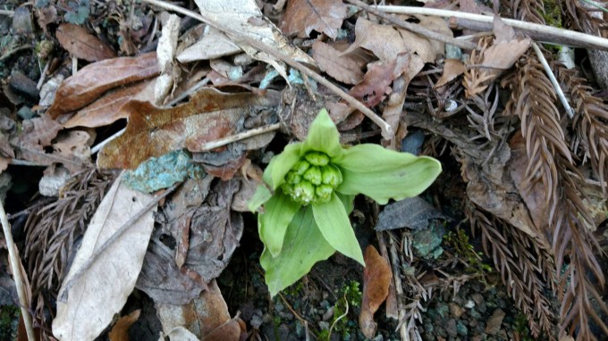 この時期に山に出かけると雪解けの冷たい水が所々に流れていますが、その片隅でふきのとうが顔を覗かせています。